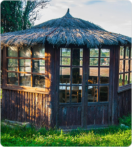 Застекленная постройка — это не только комфортно и удобно, но еще и красиво. Можно подбирать различные материалы — алюминий, дерево, пластик, которые будут гармонично сочетаться с фасадом и кровлей. Кроме этого, можно устанавливать окна с цветными каркасами и стекла с узорами. Сегодня доступны разные варианты остекления беседки, которые позволяют подобрать решение под любой стиль и бюджет.